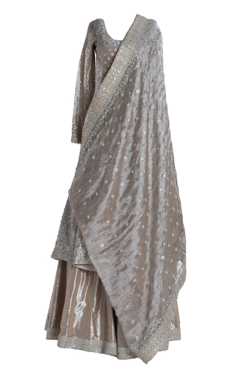 "Indulge in the ultimate luxury with this exquisite bridal outfit from Saira Shakira's coveted Bridal Collection. Crafted with the utmost attention to detail, this like-new outfit includes a kameez, lehenga, under-shirt, and shawl. Elevate your special day with the designer prestige of Saira Shakira and embrace the perfect fit in this size S ensemble."